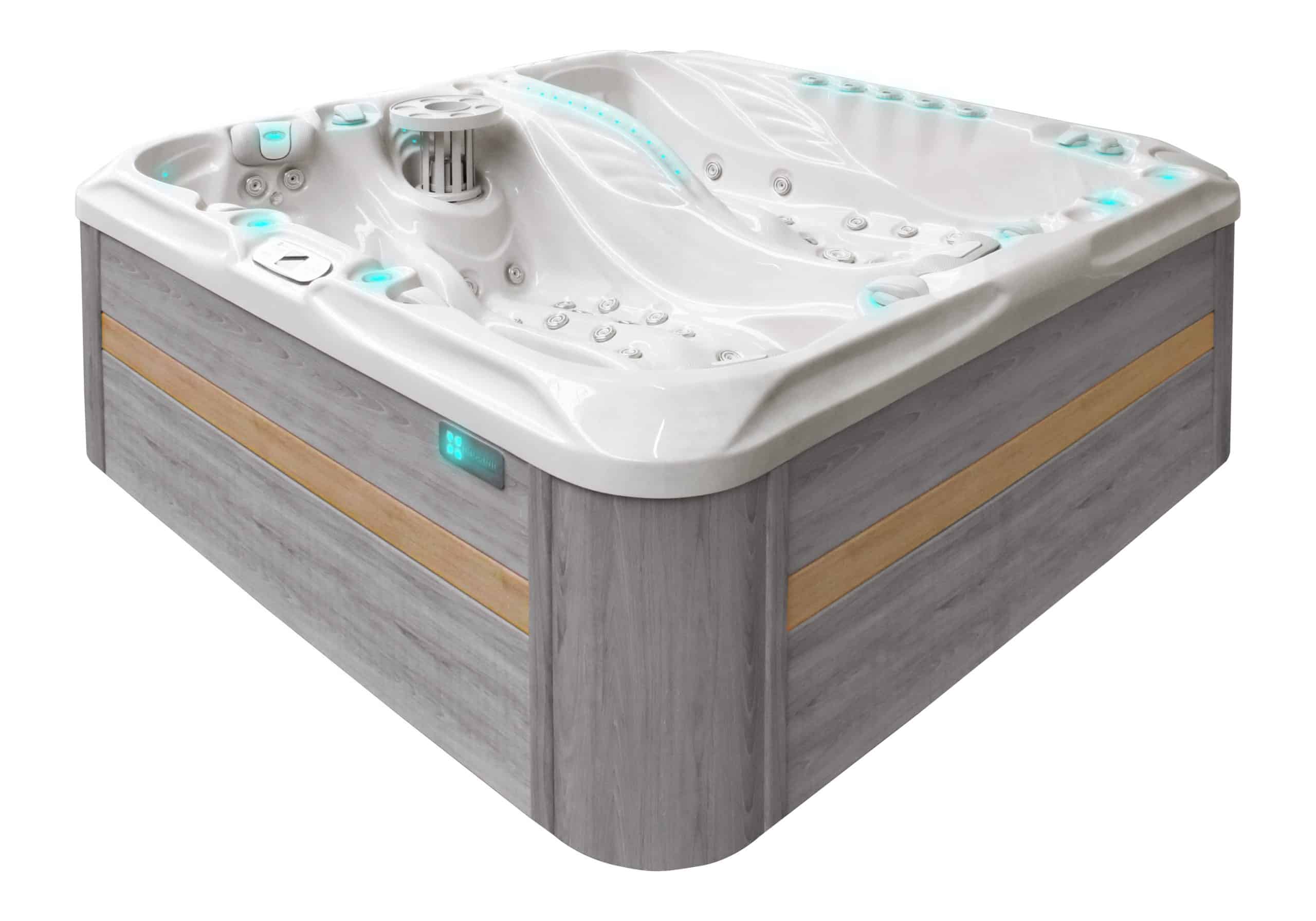 Euphoria udespa fås nu i nye smukke naturtro farver, Oak with Grey* eller Grey with Oak**. De flotte design går naturligt sammen med mange med mange fliser og træterrasser. Det gør Euphoria til en spa, der kan ramme mange forskellige udendørs designs.