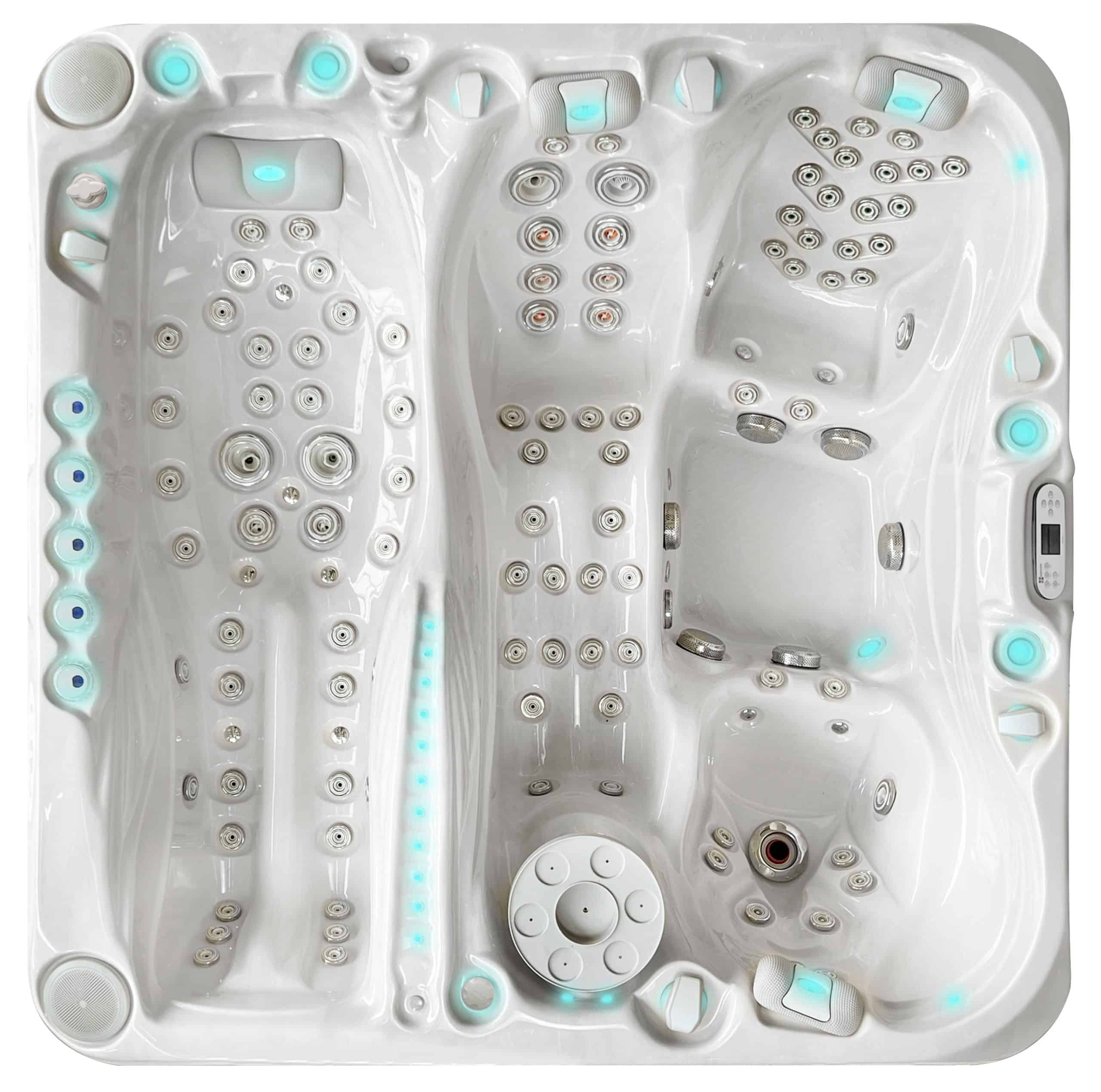 Euphoria udendørs spa er godt designet med to lounger, hvor den ene er med en liggemassage som giver fuldkropsmassage. To af sæderne er monteret med individuelle massage typer, så der er mulighed for lækker massage hele vejen rundt i udespaen.