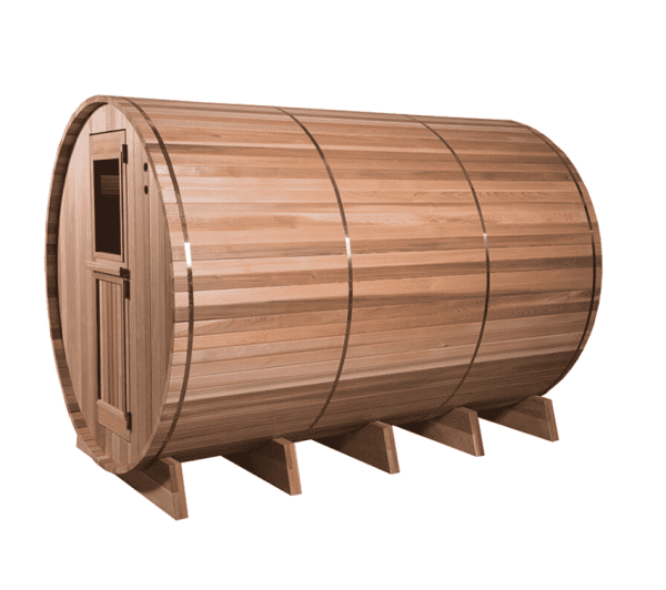 En flot og stilren saunatønde til dig der elsker at nyde tilværelsen. Saunaen kan bruges på alle tider af året. Den er bygget i rød cedertræ, som er med til at give saunaen sin skønne velkendte saunaduft og et smukt og varmt udtryk.